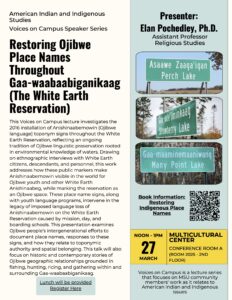 March 27, 2026 – Elan Pochedley Lecture – Resotrying Ojibwe Place Names Throughout Gaa-waabaabiganikaag (The White Earth Reservation)